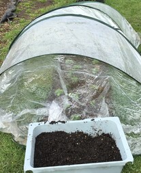 While it is still a little cold for planting basil the students have created a small basil garden. The students have put a covering over the top for a greenhouse effect to protect the basil seedlings from the cold and provide a warmer environment.