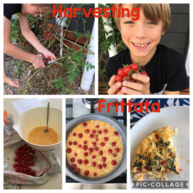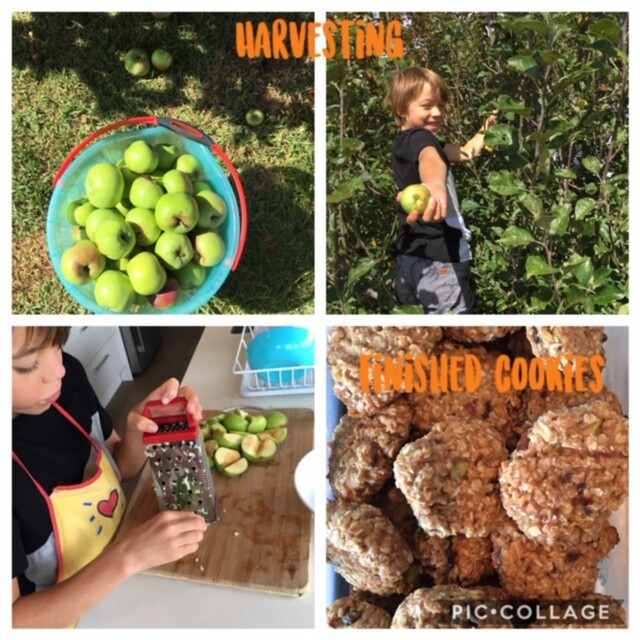 This week my son and I harvested apples & cherry tomatoes from our garden and made Apple Oat Cookies and Tomato Frittata. Check out the photos.